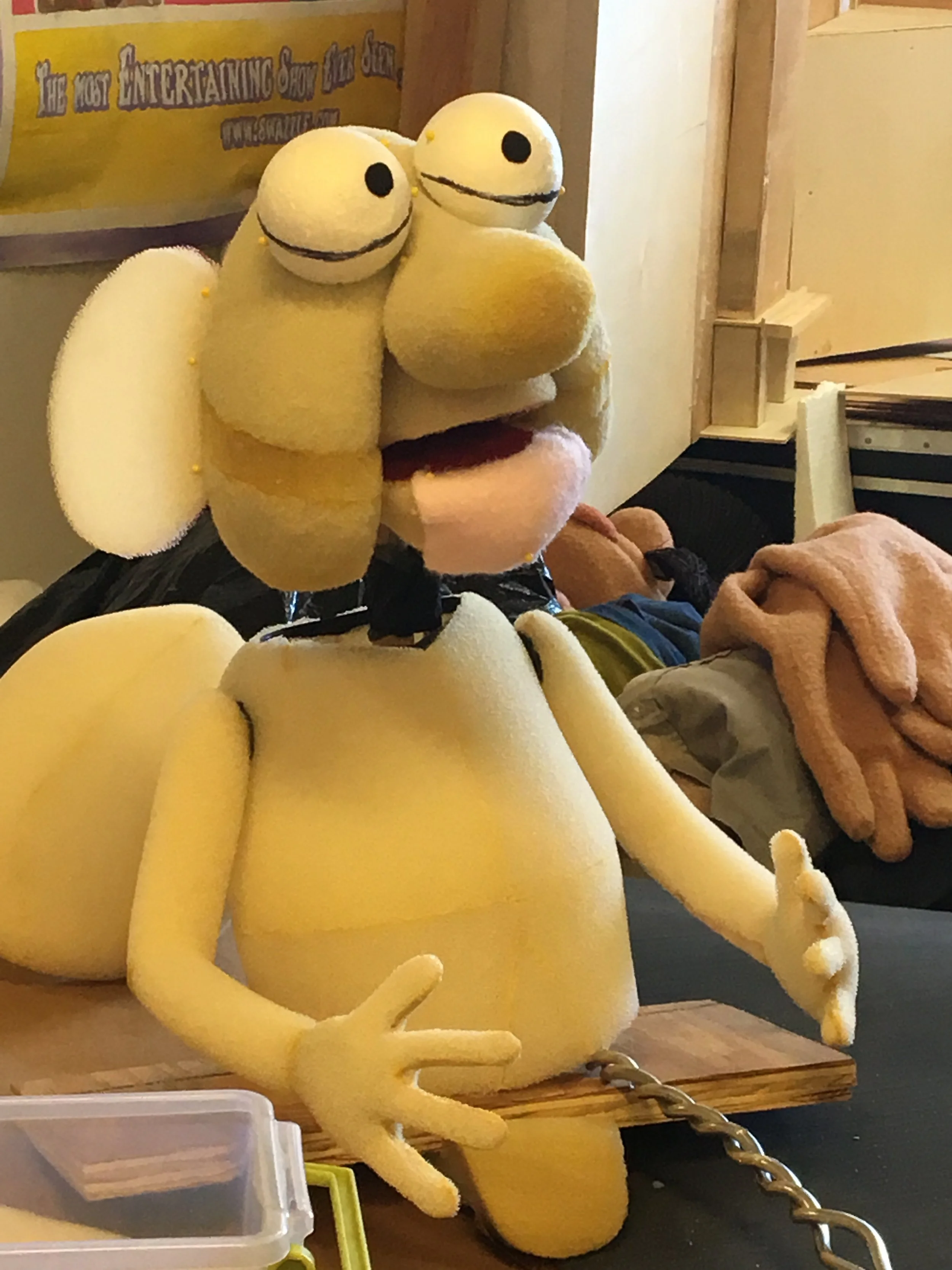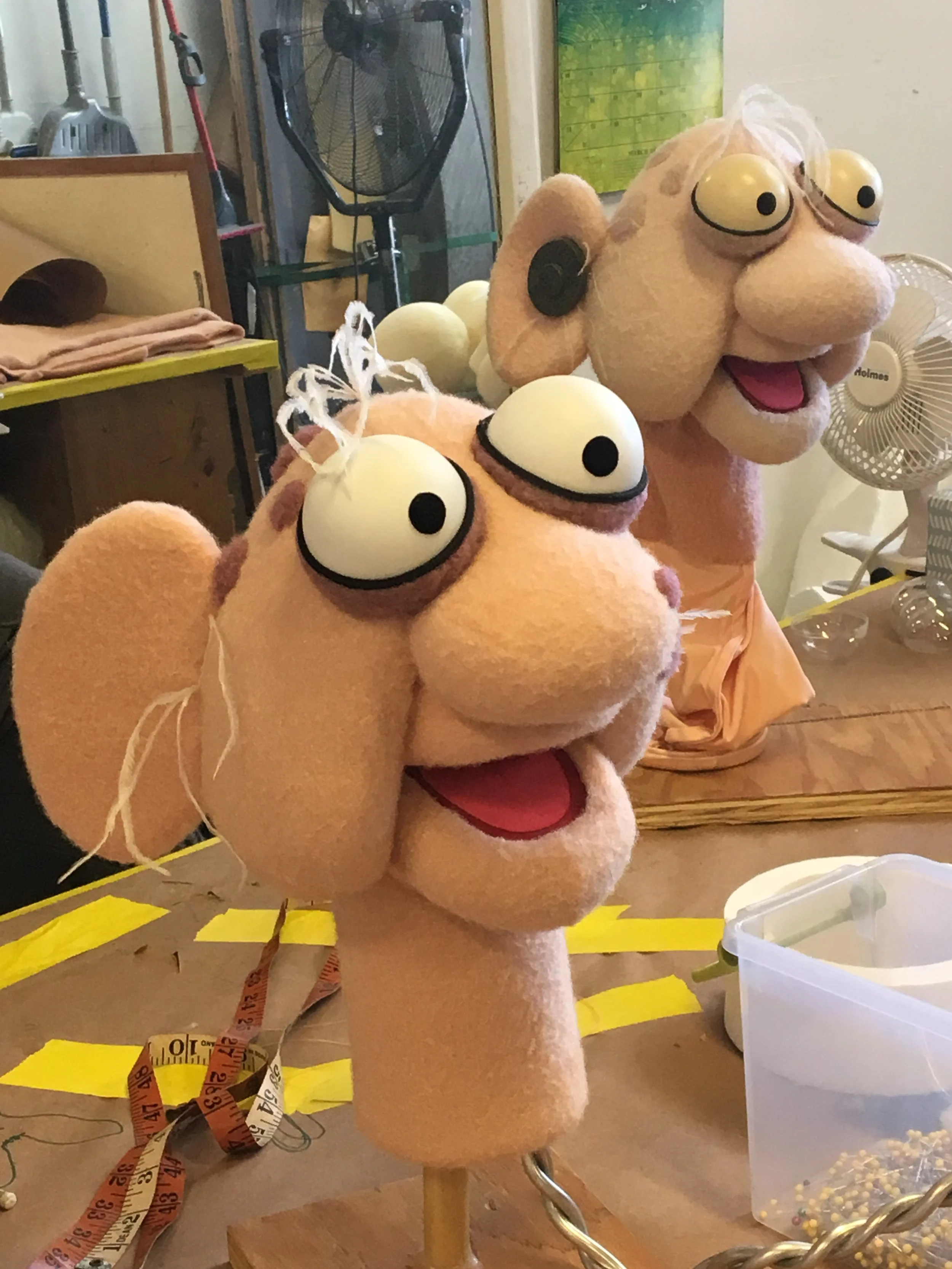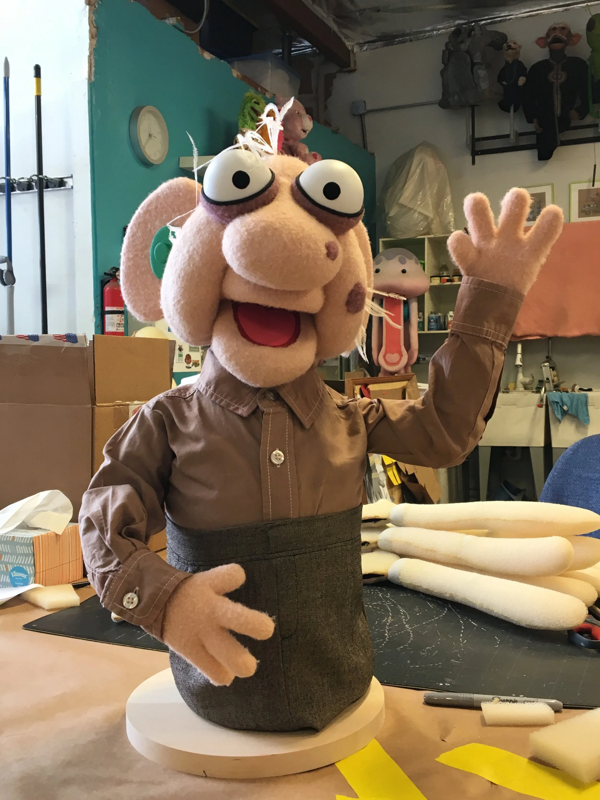 At Swazzle Puppet Studio, I was the builder behind Elmer Higgins 2.0. The puppet from the original series had faded & deteriorated to the point that it was no longer usable and needed to be recreated. This one was particularly challenging because we did not have the original patterns, so in order to make the new version it required a lot of measuring with tape measures & calipers, and sometimes just eyeing it. To learn more, check out the behind-the-scenes photos below, and consider contacting me to help bring your puppet project to life!