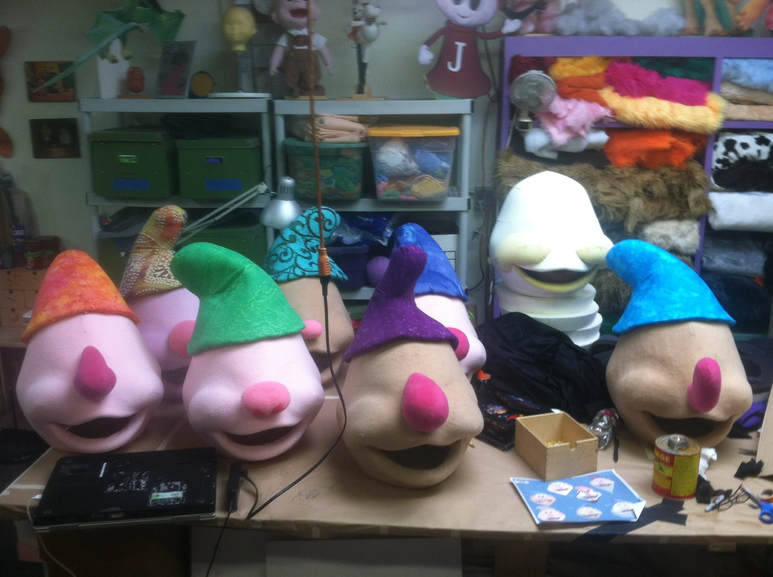 At Swazzle Puppet Studio, I was tasked with building the costume heads of the seven dwarfs for Panto: A Snow White Christmas. This was a live show featuring celebrities in the lead roles, and costumed versions of the famous dwarfs! To learn more, check out the behind-the-scenes photos below, and consider contacting me to help bring your puppet project to life!