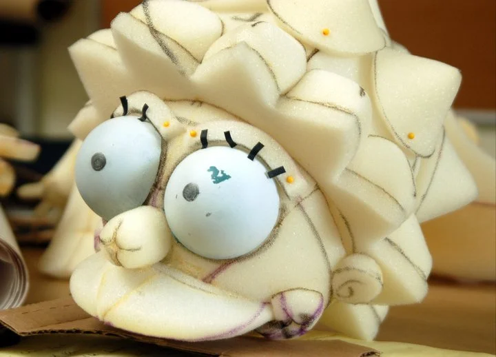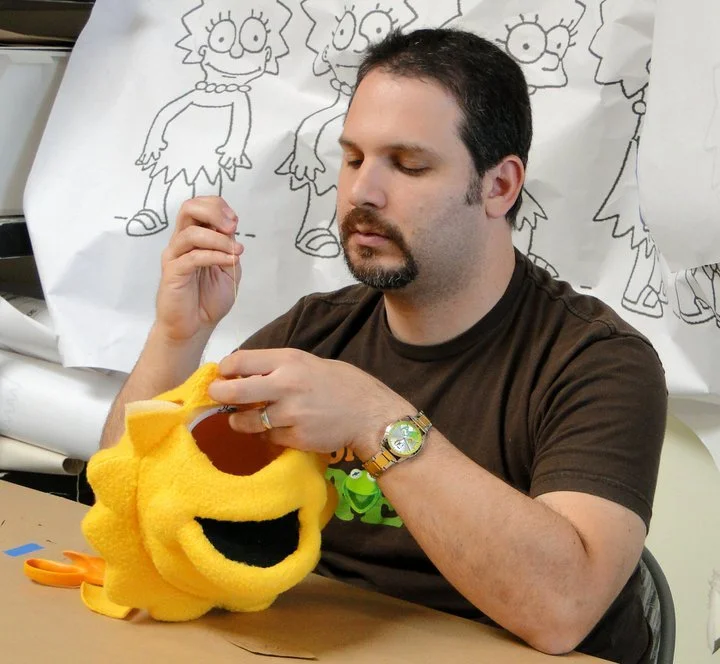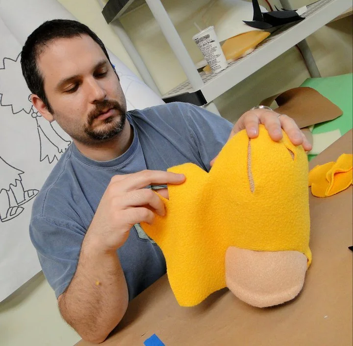 At Swazzle Puppet Studio, I was the builder behind Homer Simpson. Translating this character from 2-D to 3-D wasn’t easy, so we used toys as our guide. Among other details, the toys helped inform how Homer’s hair would sit on his head (both on the top and on the sides) and how to represent that in three dimensions. To learn more, check out the behind-the-scenes photos below, and consider contacting me to help bring your puppet project to life!