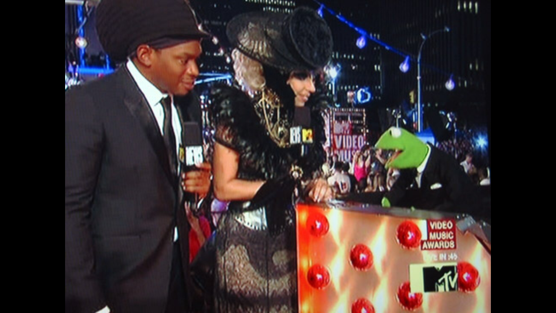 When Lady Gaga was nominated for an award at MTV’s Video Music Awards she could bring any date she wanted. She chose a famous frog. Lucky for me, I was brought in to perform Kermit for this appearance. I was picked up in a limo, and Gaga was already inside waiting. She was incredibly sweet, and surprisingly shy. Gaga proceeded to talk directly to Kermit for the entire ride, asking him questions and telling him how much she loved him, and this was without any cameras even rolling! When we got out of the car we did an interview with the MTV host, and soon she was whisked away into Radio City Music Hall! What a crazy evening!