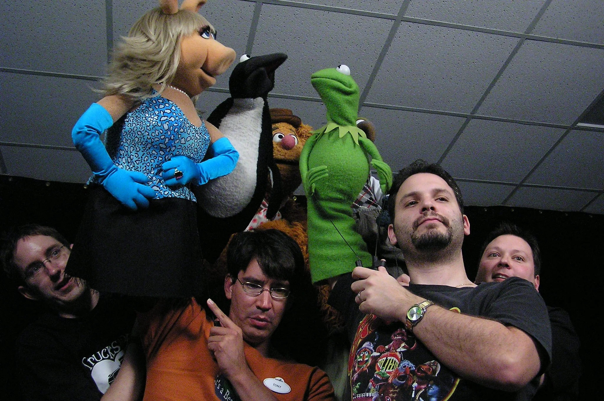 The Muppets were invited to appear at the inaugural D23 Expo in Anaheim, CA, and I was along for the ride! They came on stage in a replica of Disneyland’s Mark Twain Riverboat, with Kermit up top playing his famous banjo. I was truly honored to be a part of this, as I was able to sing my favorite song “The Rainbow Connection” from The Muppet Movie. I had recorded the vocals the day before, and it really hit me how crazy it was that I was in a booth recording Jim Henson’s most cherished song for this live appearance! Craziest thing was that I was allowed to take Kermit home the night before to rehearse, so he was able to meet my wife and my parents!